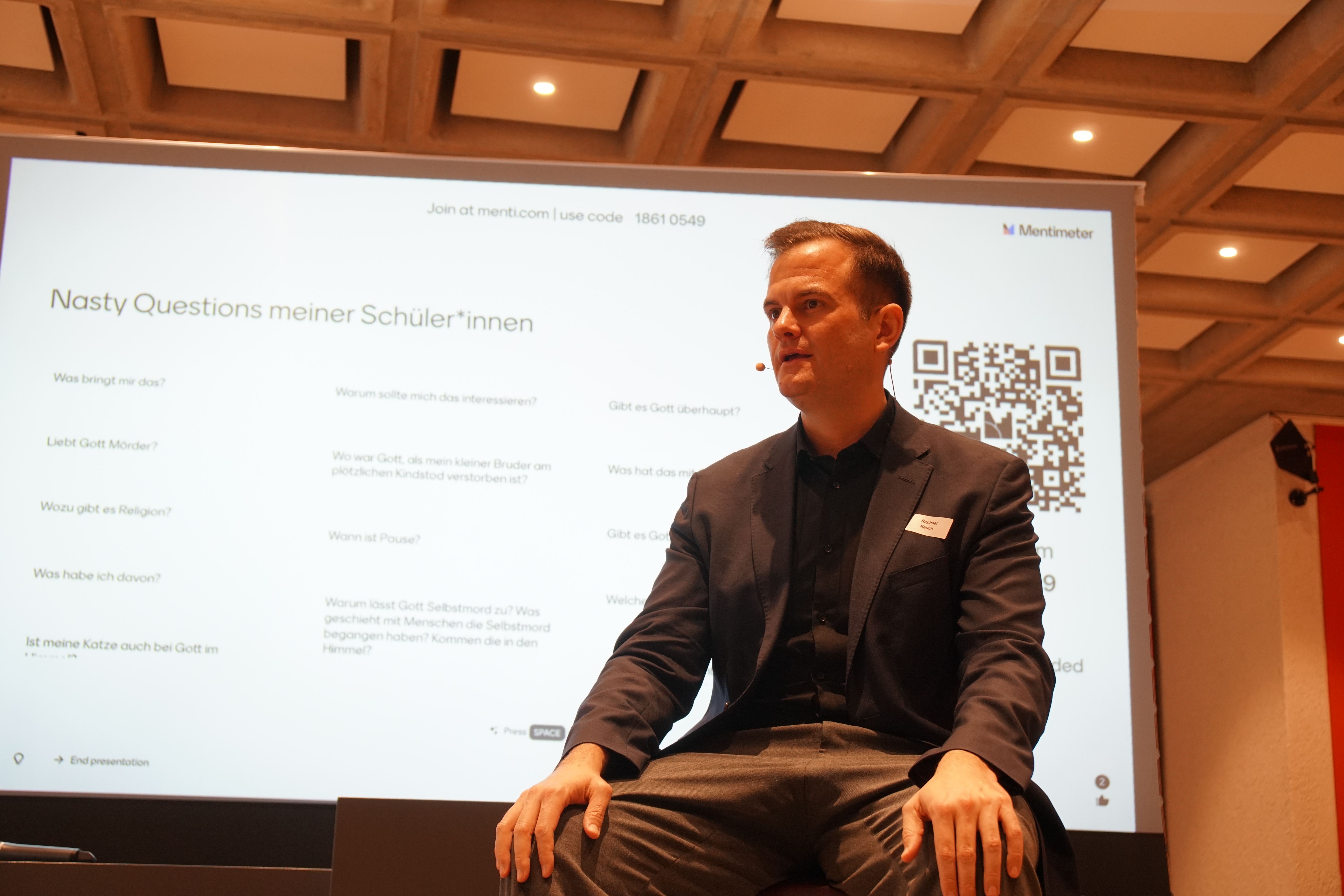 Die Frage, wie verantwortungsvolle, ehrliche und kreative Glaubenskommunikation aussehen kann – auch angesichts leidvoller Erfahrungen und krisenhafter Ereignisse – stand im Mittelpunkt. Raphael Rauch, Journalist, Historiker und Religionspädagoge bot einen lebendigen Input. Die evangelischen Fachstellen «Kind und Familie», «Musik in der Kirche», «Medien» und «Unterricht» sowie die katholischen Fachstellen «Religionspädagogik» und «Kirchliche Erwachsenenbildung» gestalteten ein buntes Workshopprogramm und einen gut bestückten Medientisch. Mit nach Hause nehmen konnten die Teilnehmenden praktische Ideen, Gedanken, Thesen und Medientipps für die Arbeit mit Kindern und Jugendlichen in Unterricht und Feiern.