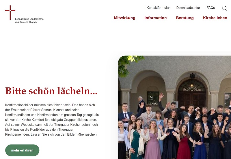 Sie ist luftig, in gefälligem Layout mit dem Logo «Kreuz im Licht», die Bilder haben runde Ecken und trotzdem enthält sie ausführliche Informationen, die sich über das «Downloadcenter» und über eine verbesserte Suchfunktion wesentlich einfacher finden lassen: Das ist die neue Webseite der Evangelischen Landeskirche des Kantons Thurgau, die seit dem 6. Mai 2024 online ist. Die neue Webseite ist der Dreh- und Angelpunkt der Kommunikation der Landeskirche.