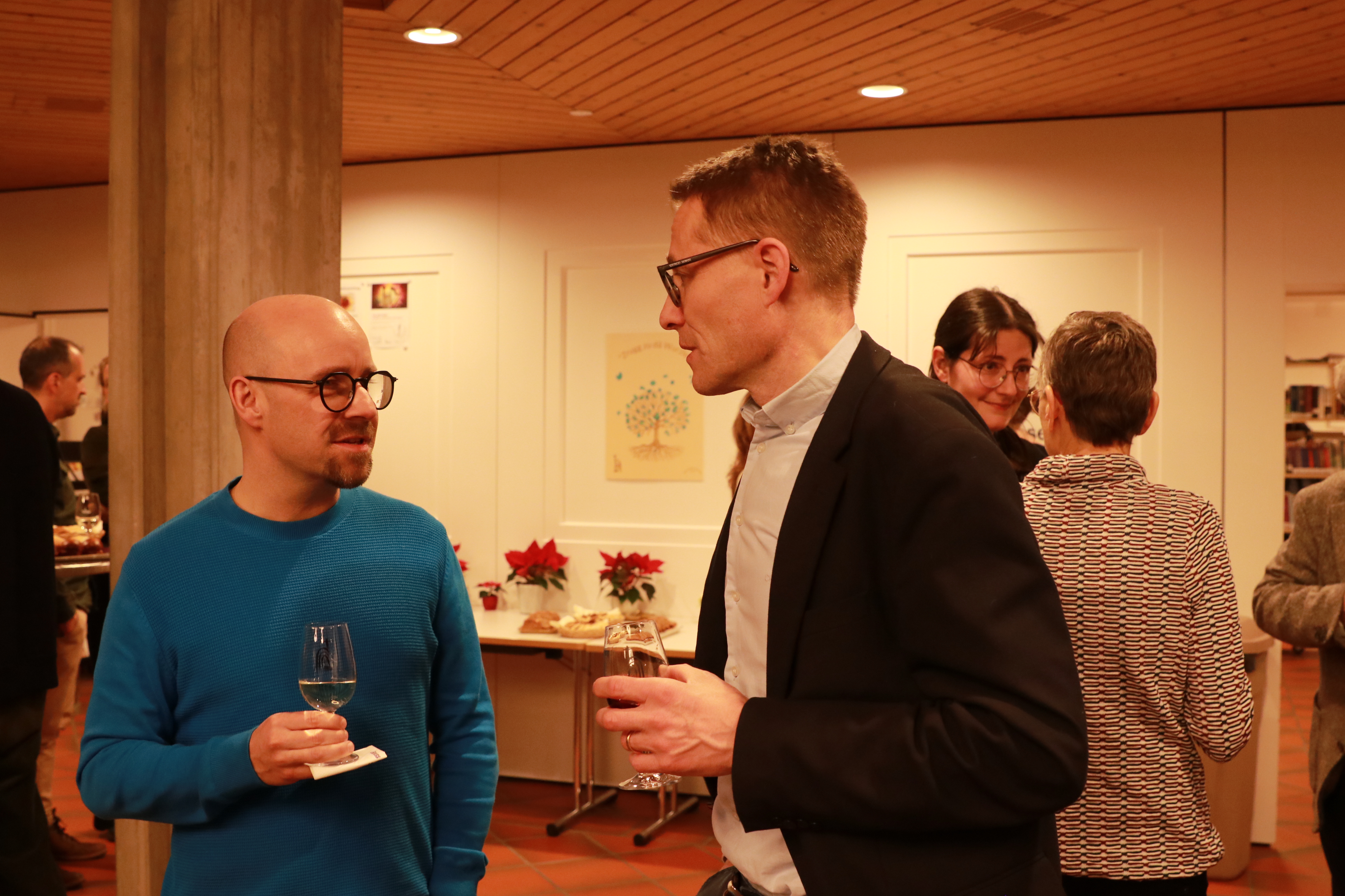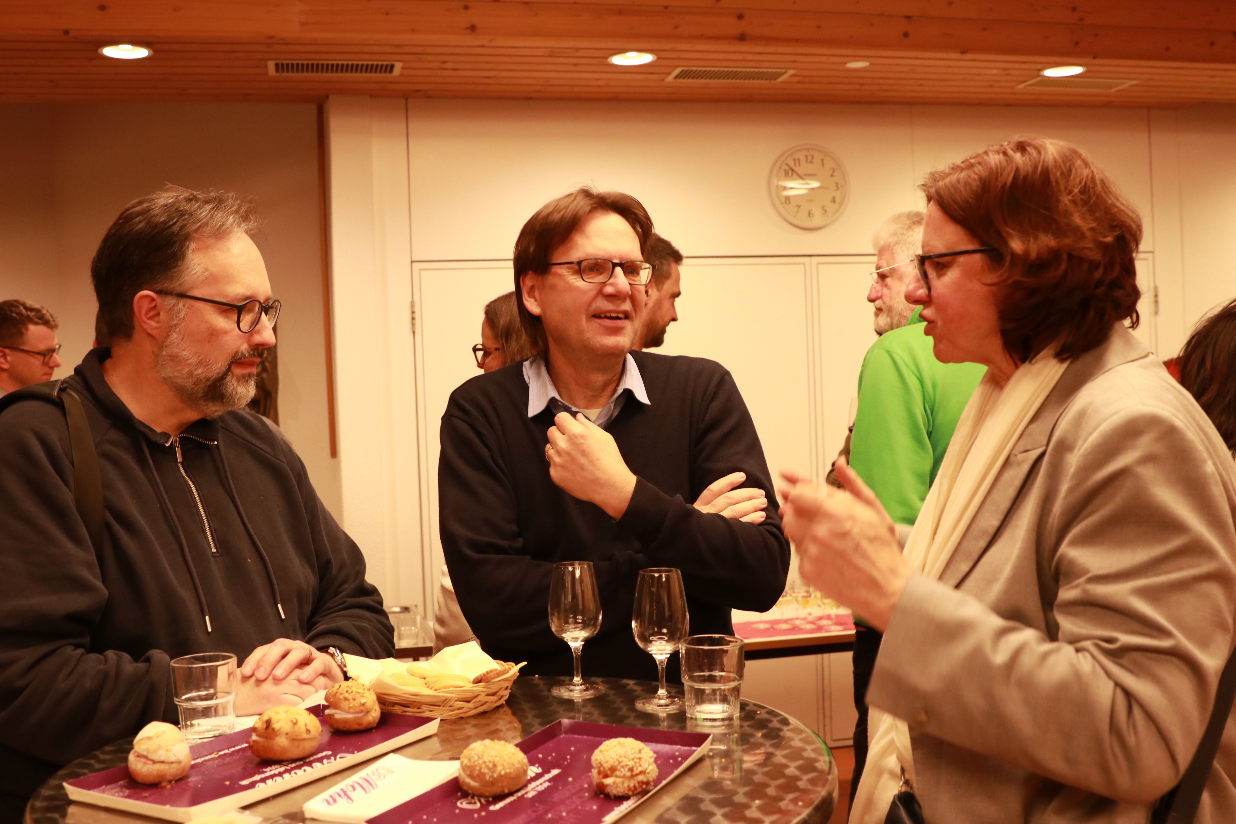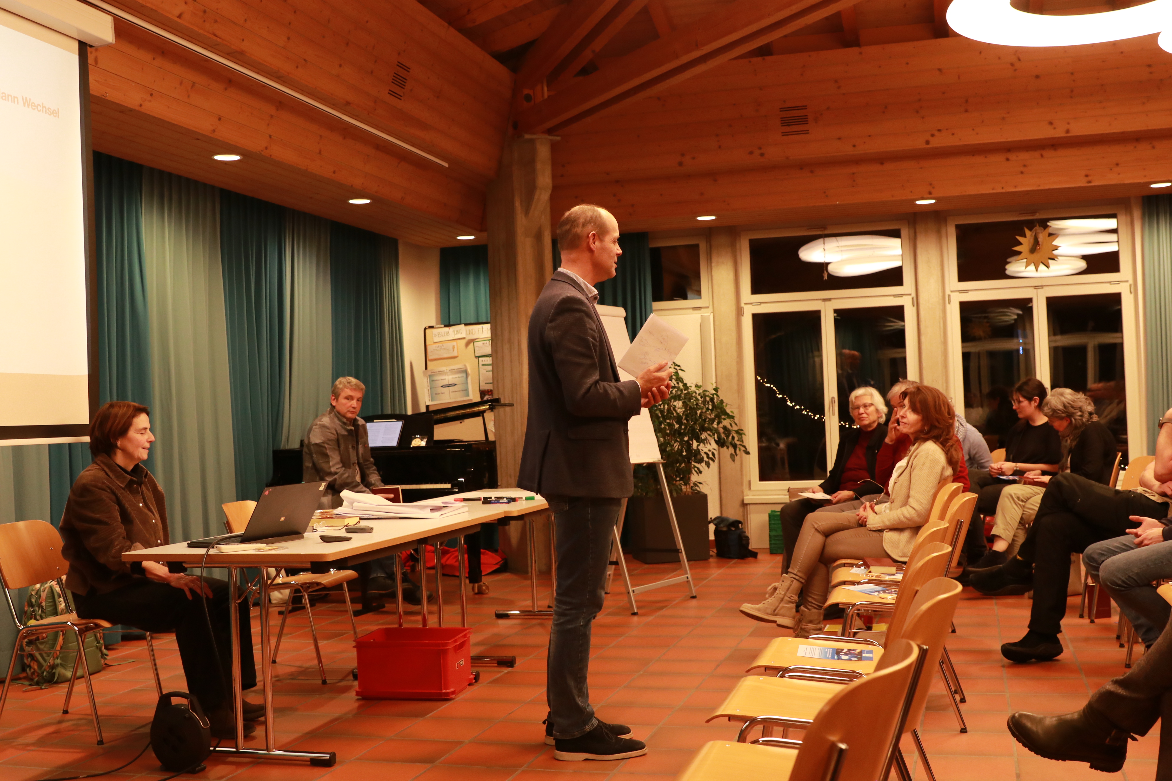 Danach wurden alle Gäste eingeladen, in einem WorldCafé 10 Thesen zum Thema KI und Kirche zu diskutieren. Vor dem verdienten Apéro ermittelte Kirchenmusiker Dieter Wagner mit dem Mentimeter das beliebteste Kirchenlied im Raum. Gewählt und gesungen wurde das Kirchenlied 603 «Bleib bei mir, Herr, der Abend bricht herein».