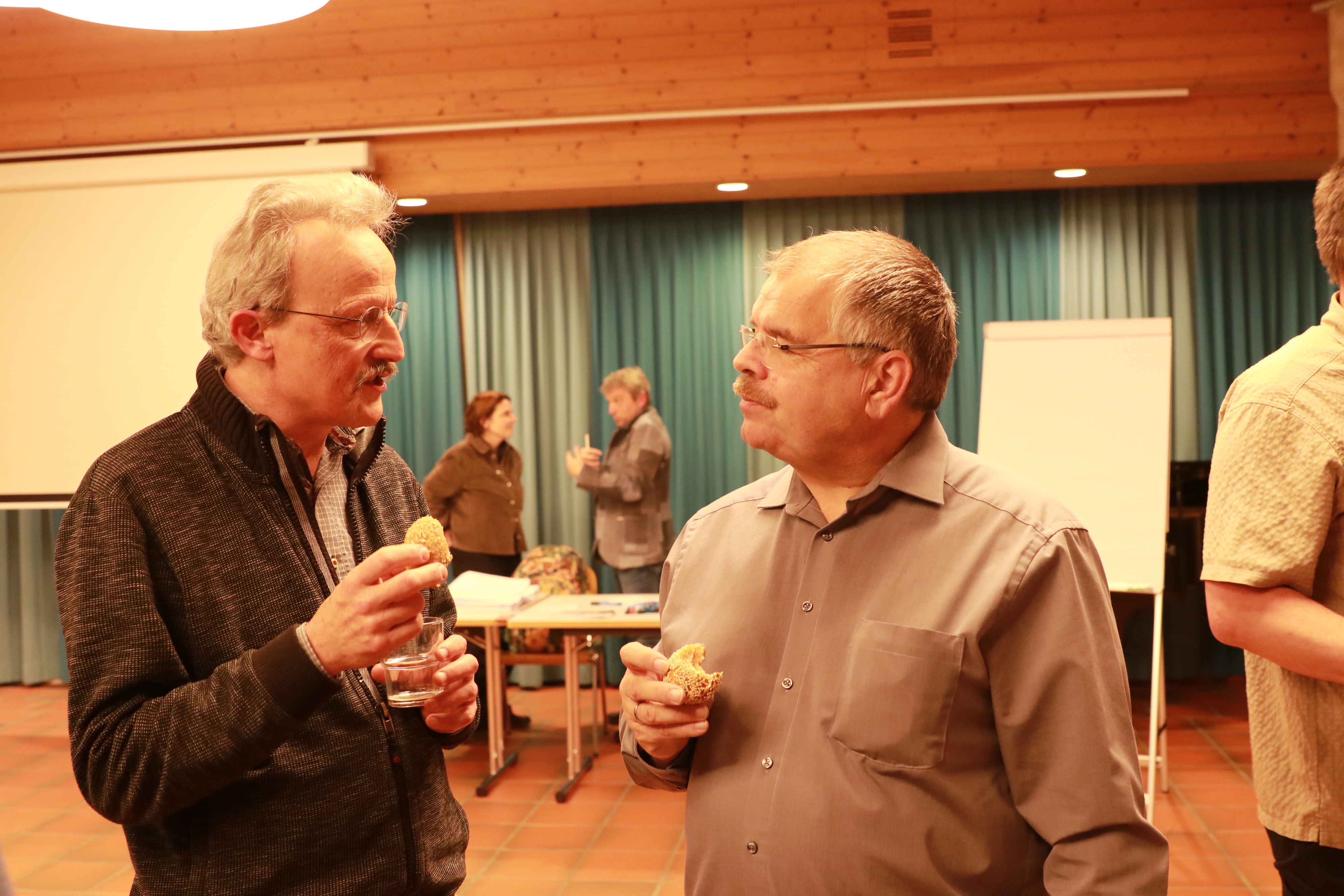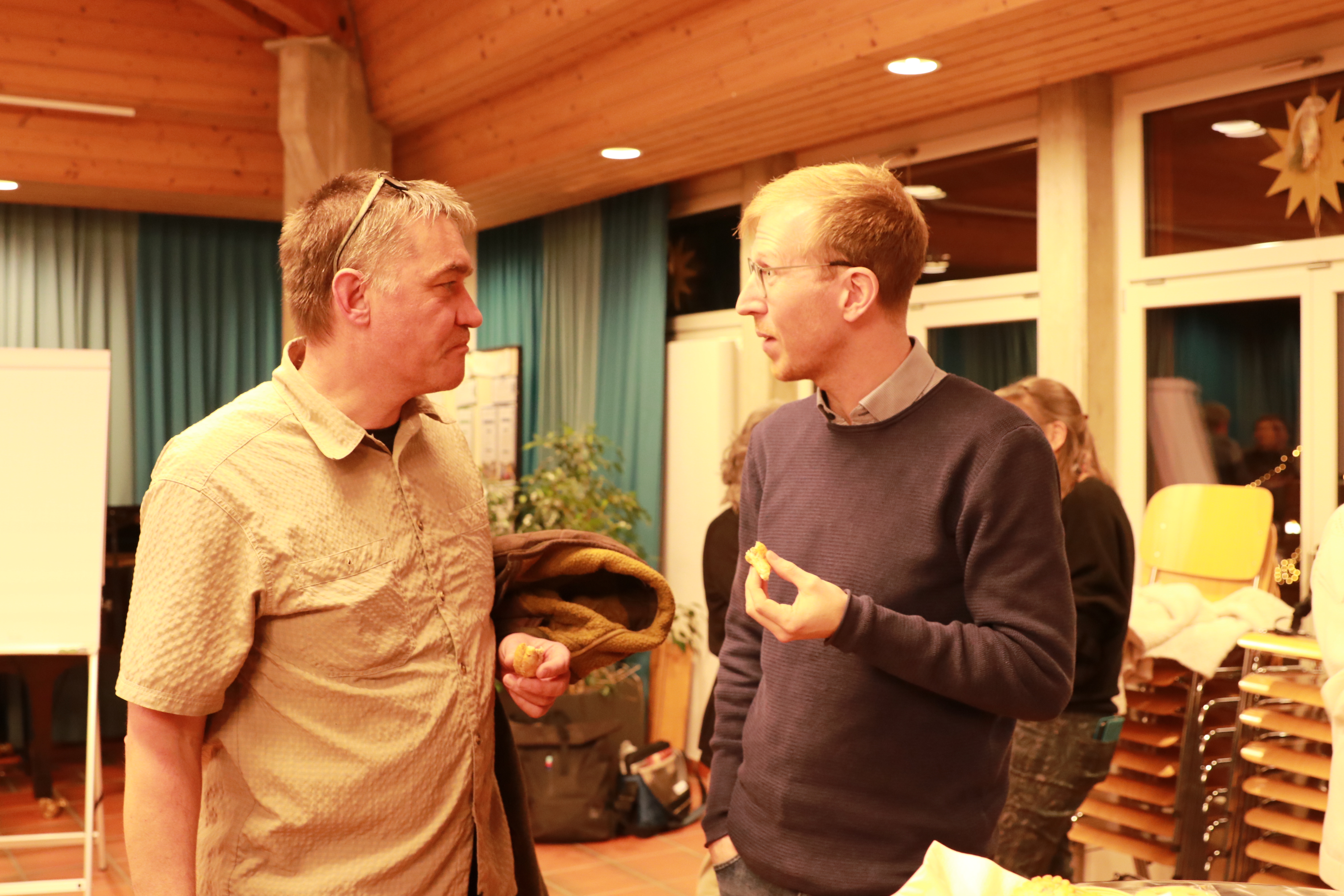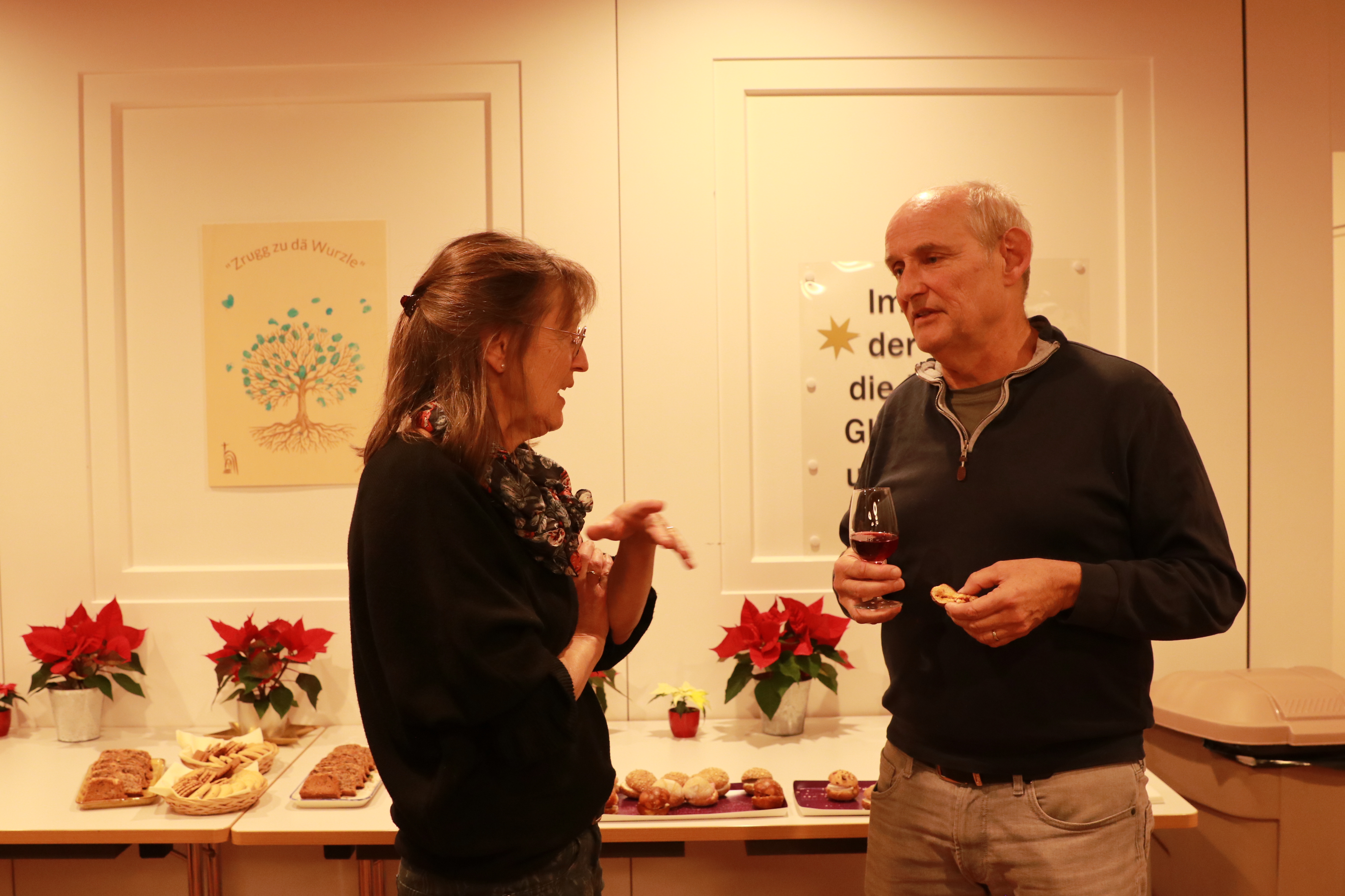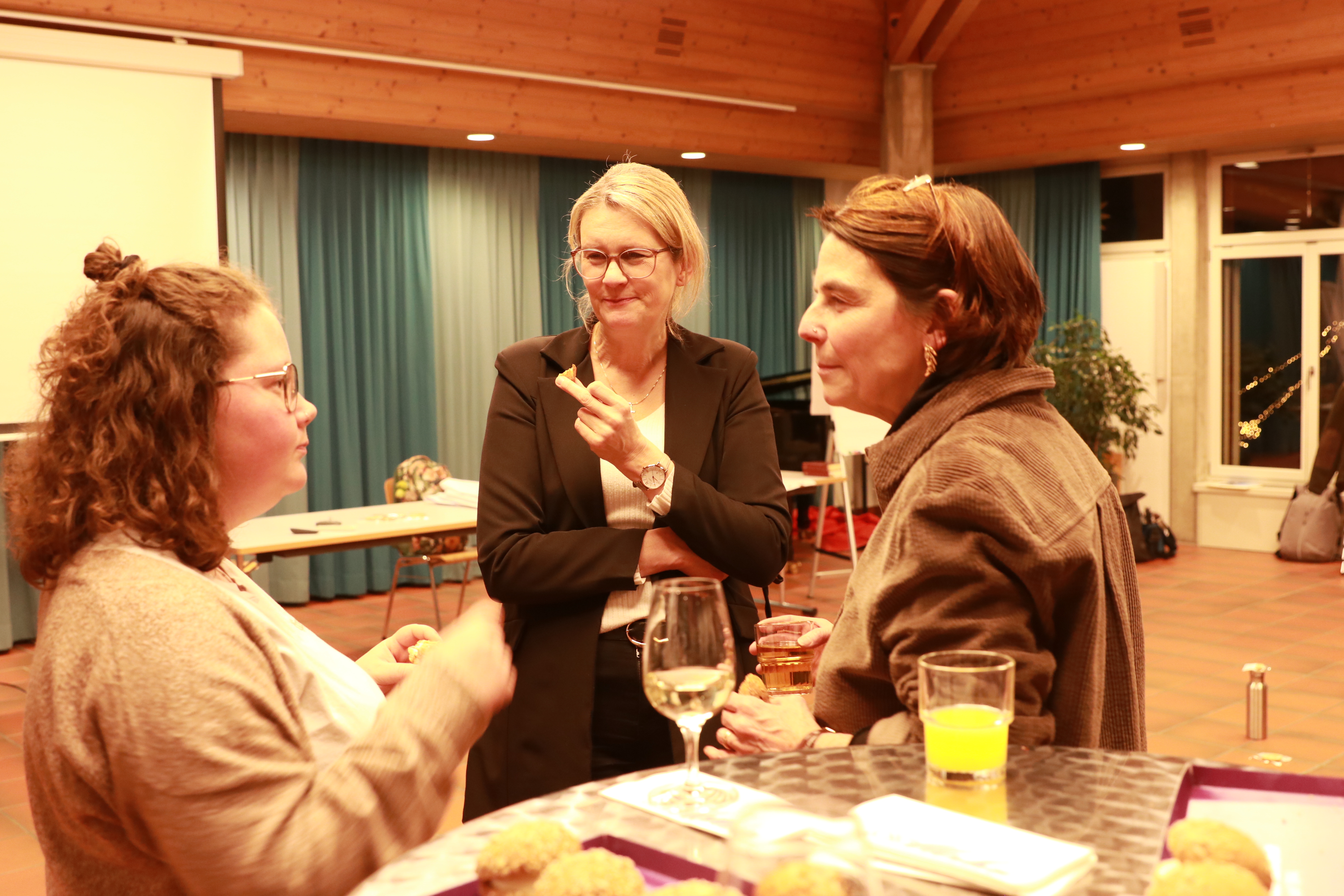 Danach wurden alle Gäste eingeladen, in einem WorldCafé 10 Thesen zum Thema KI und Kirche zu diskutieren. Vor dem verdienten Apéro ermittelte Kirchenmusiker Dieter Wagner mit dem Mentimeter das beliebteste Kirchenlied im Raum. Gewählt und gesungen wurde das Kirchenlied 603 «Bleib bei mir, Herr, der Abend bricht herein».
