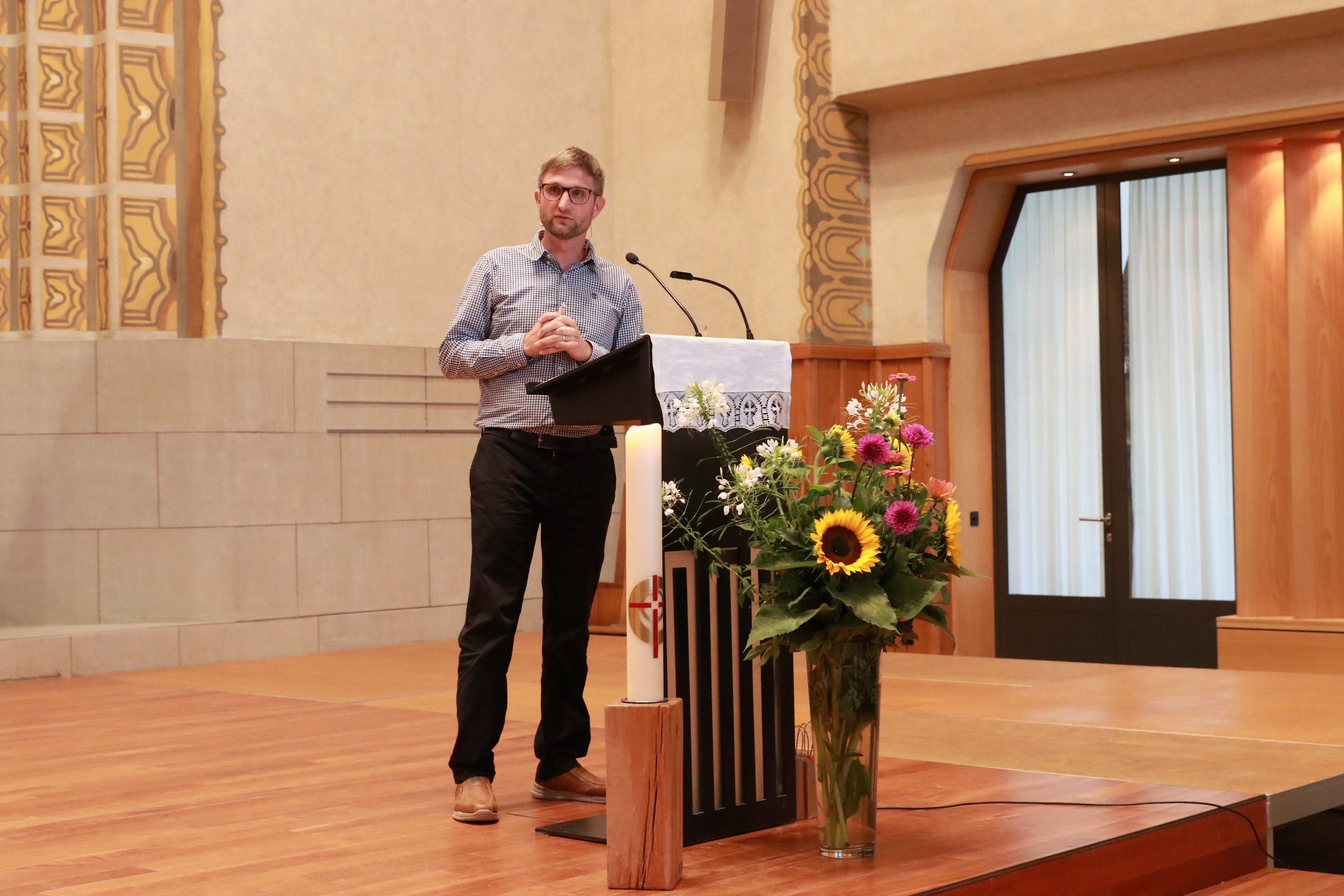 Der lokale Pfarrer Lars Heynen nahm das Thema Rufen in seiner Begrüssung auf. Er erzählte eine Episode aus Michel aus Lönneberga von Astrid Lindgren. Darin stellt die Magd Lina nach einem Gottesdienst über die Schöpfung fest: Gott muss ein feiner Handwerker sein, so wie er die Schnörkel im Ohr gemacht hat. Tatsächlich kommt das Wort hören laut Heynen in der Bibel weit häufiger vor wie das Wort sehen.