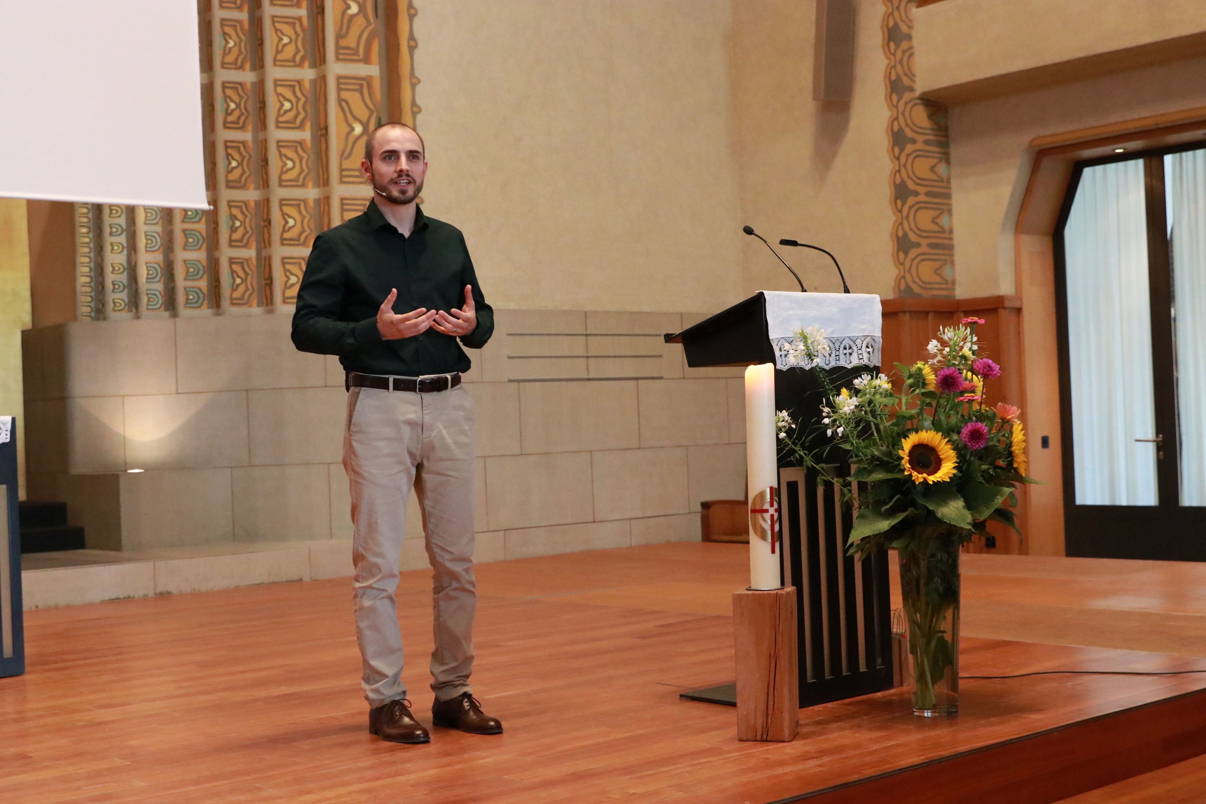 Remo Rüegg erinnerte an Johannes 10 und die Schafe, die Jesus einzeln beim Namen nennt und die seiner Stimme nachfolgen. Rüegg hatte sich zusätzlich eine kantige Bibelstelle ausgesucht, die er als Experiment mit allen Besucherinnen und Besuchern nachspielen wollte: Die Vertreibung der Händler und Geldwechsler aus dem Tempel. Er forderte die Gemeinde auf, lautstark Opfertiere zu verkaufen und Geld zu wechseln. Drei Anwesende sollten in diesem Tumult versuchen zu beten. «Diakon zu sein heisst auch, auszurufen, wie Jesus es getan hat», so Rüegg. Eine andere Aufgabe ist es, die Nächstenliebe zu leben. Wer hat schon Nächstenliebe als Jobtitel? Wobei seiner Meinung nach Diakonie im Alltag keinen Arbeitsvertrag braucht.