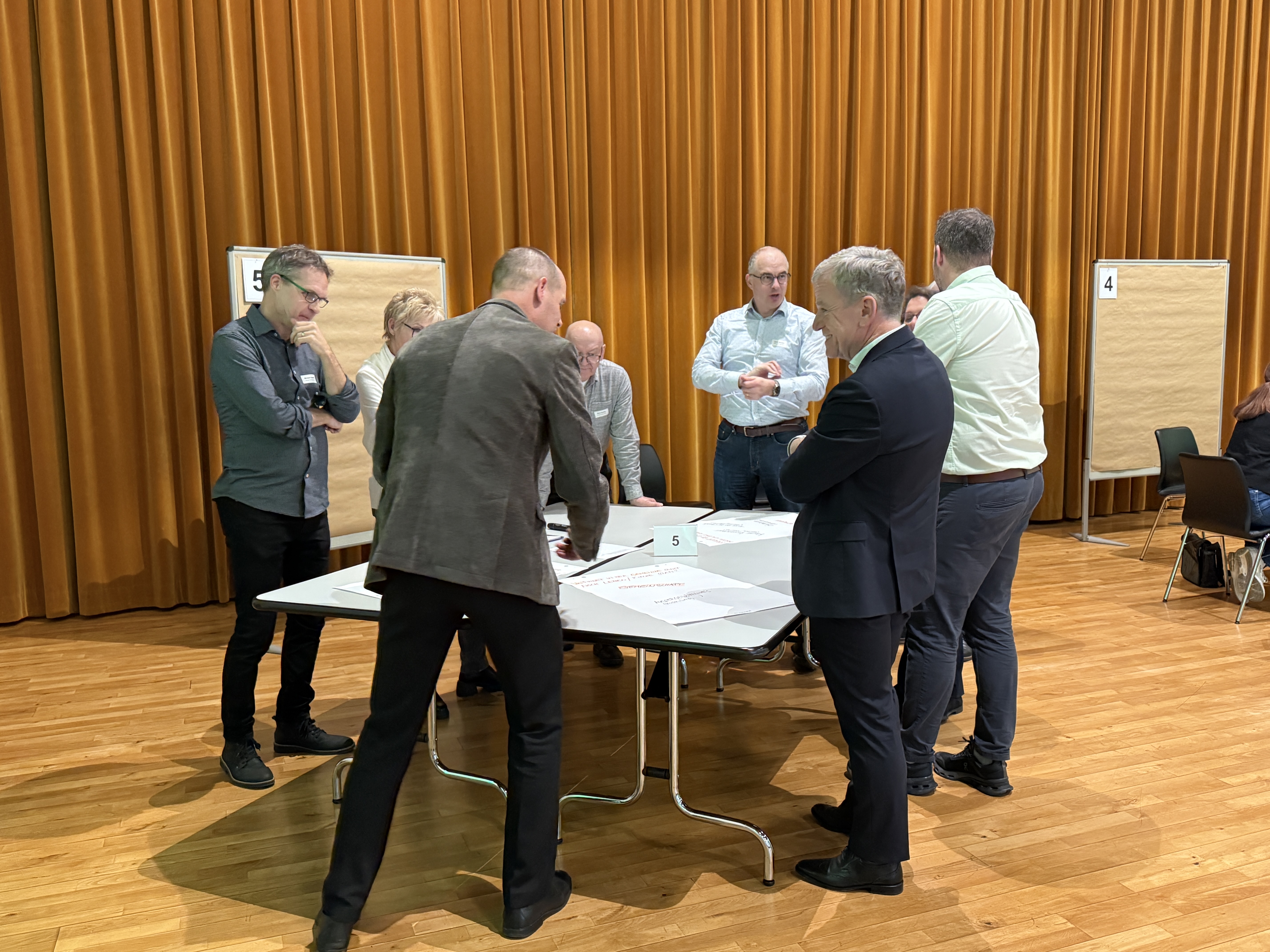 Am Samstagmorgen wurde es konkret. Was heisst das für unsere eigene Kirchenvorsteherschaft? Was erwarten wir von der Kantonalkirche? Und wo müsste das Gesetz geändert werden? Zu den Post-its vom Anfang kamen neue hinzu, und jede und jeder hielt einen ganz persönlichen nächsten Schritt darauf fest. Franz Kreissl kommentierte als Beobachter und zeigte sich beeindruckt vom gemeinschaftlichen Geist. Dass es damit auch weitergehen kann, zeigten zum Schluss die Einblicke in die schon bestehenden Intervisionsgruppen, was auch gleich vor Ort ausprobiert werden konnte.